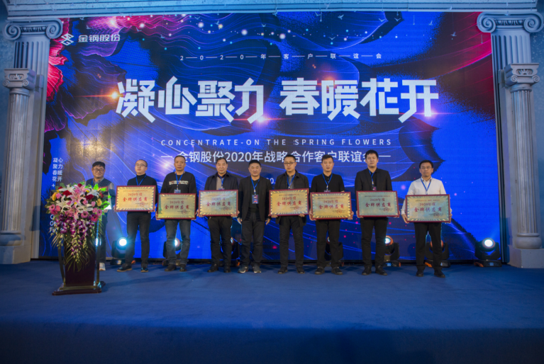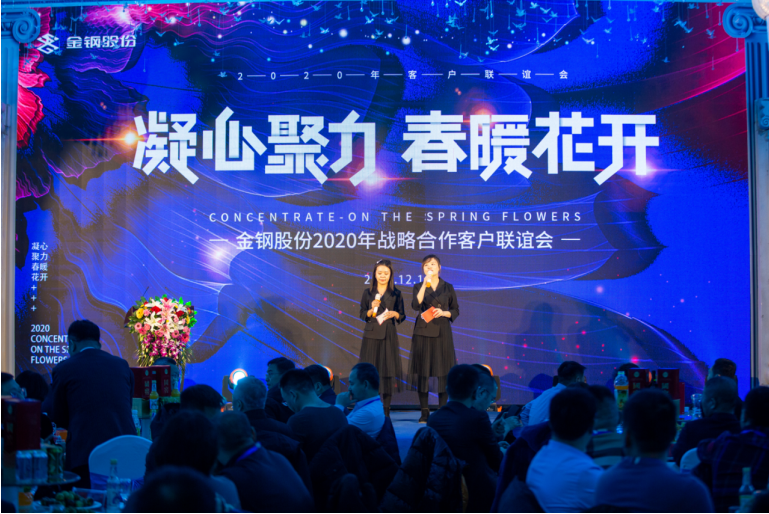 公司邀请48户核心战略合作伙伴共计180余人参加了会议。会上,公司党委书记、董事长沈江山首先致欢迎词;随后部分客户代表发表会议致辞(广州广钢新材料公司、上海金通物产公司、黑龙江现代红嘴钢铁经销公司、辽宁固存兴钢铁供应链管理公司、瓦房店轴承股份公司、辽宁方大国际贸易公司),我的钢铁网资深分析师甘遐勇先生做了《2020年国内钢矿市场回顾及2021年行业发展展望》专题报告;销售处长、供应处长宣布了2020年金牌分销商、金牌供应商评选结果并主持颁奖。最后,公司总经理蒋俊对金钢股份2020年工作进行了简要总结,对2020年品牌建设、市场开发、经营业绩进行了全面盘点,对2021年经营目标、计划安排、市场布局、营销重点进行了重点介绍,并对下一步客户合作提出了新的目标和期望。会后进行了答谢酒会。