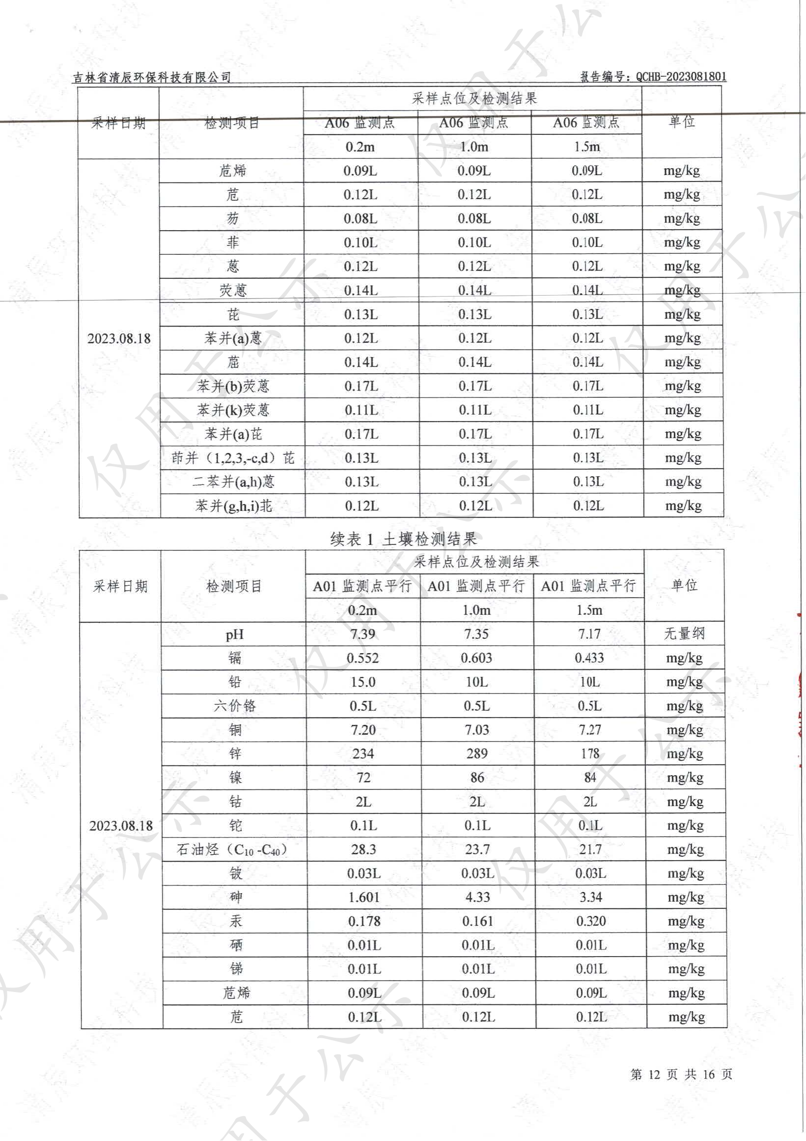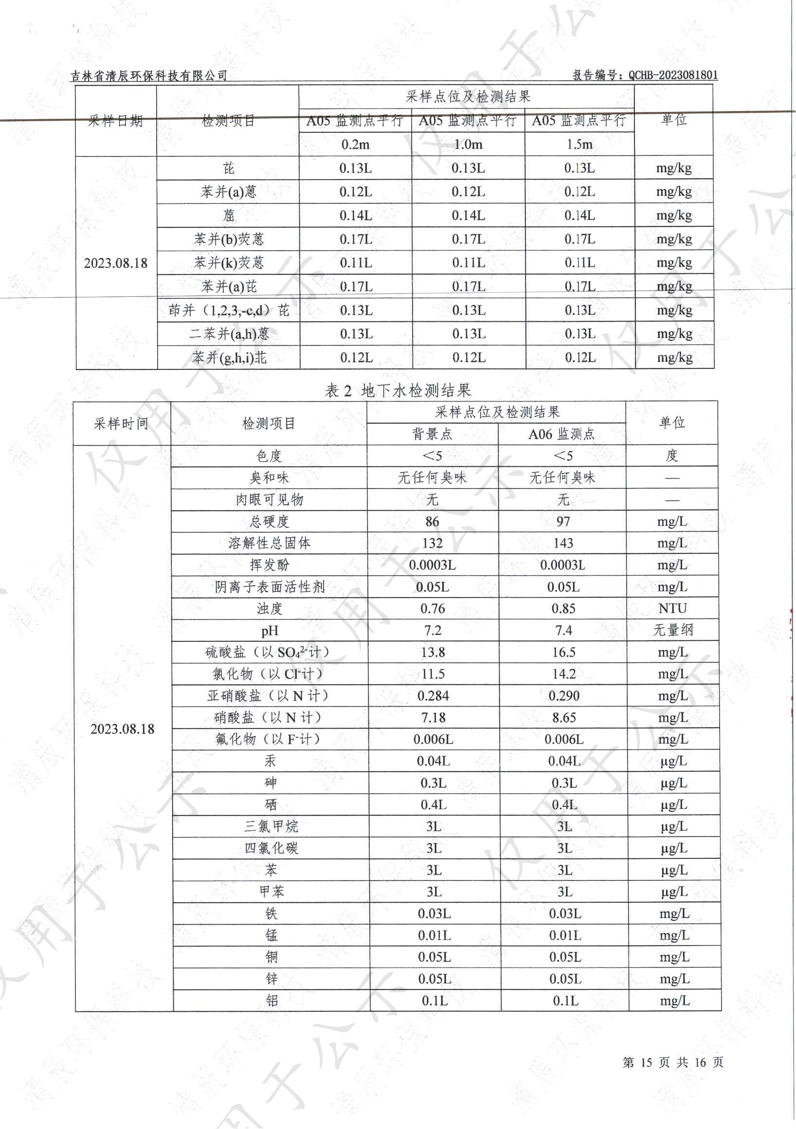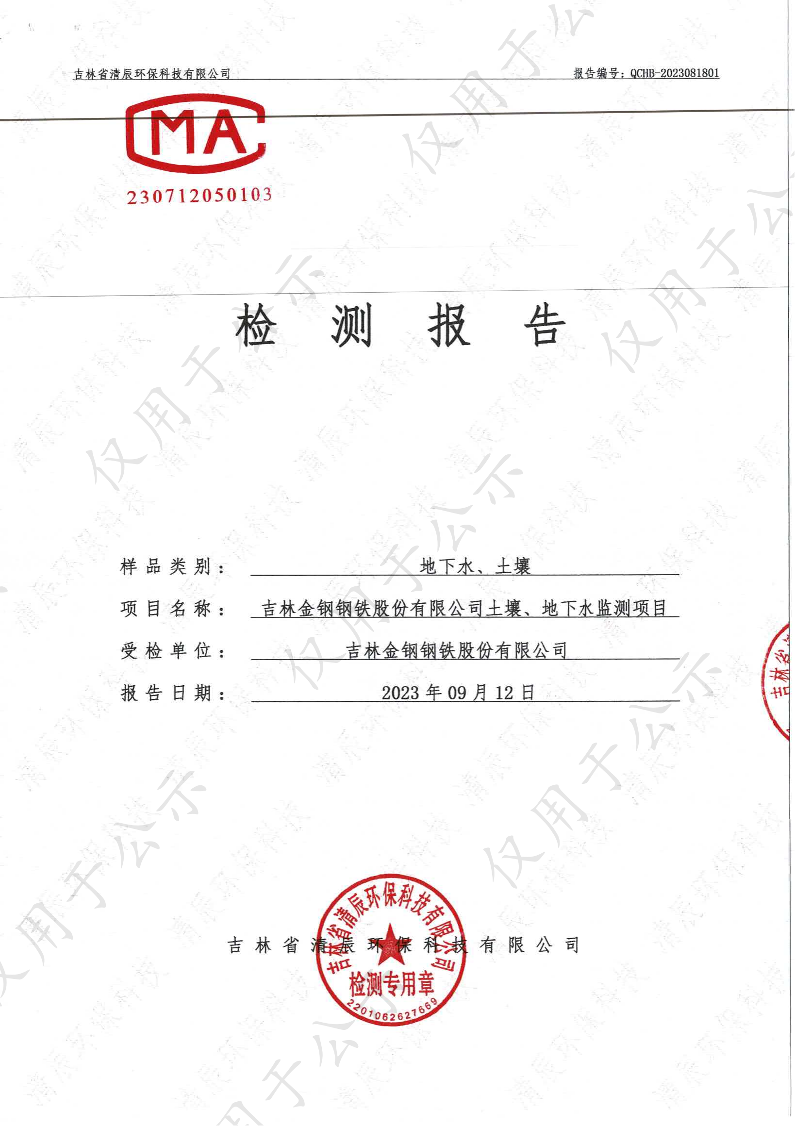 2023年土壤及地下水自行监测数据公示
