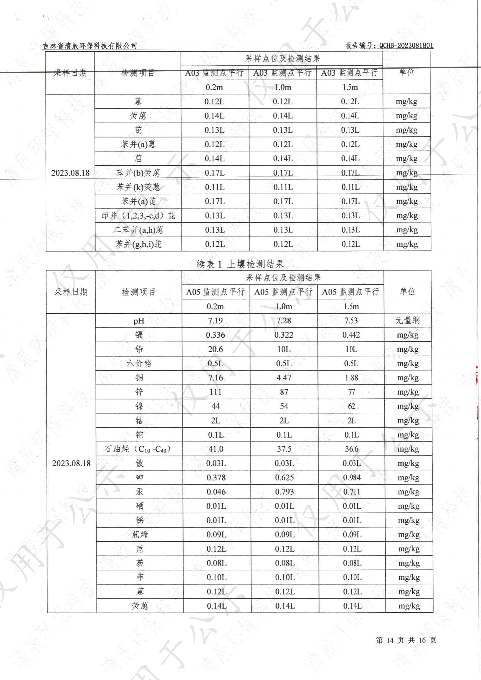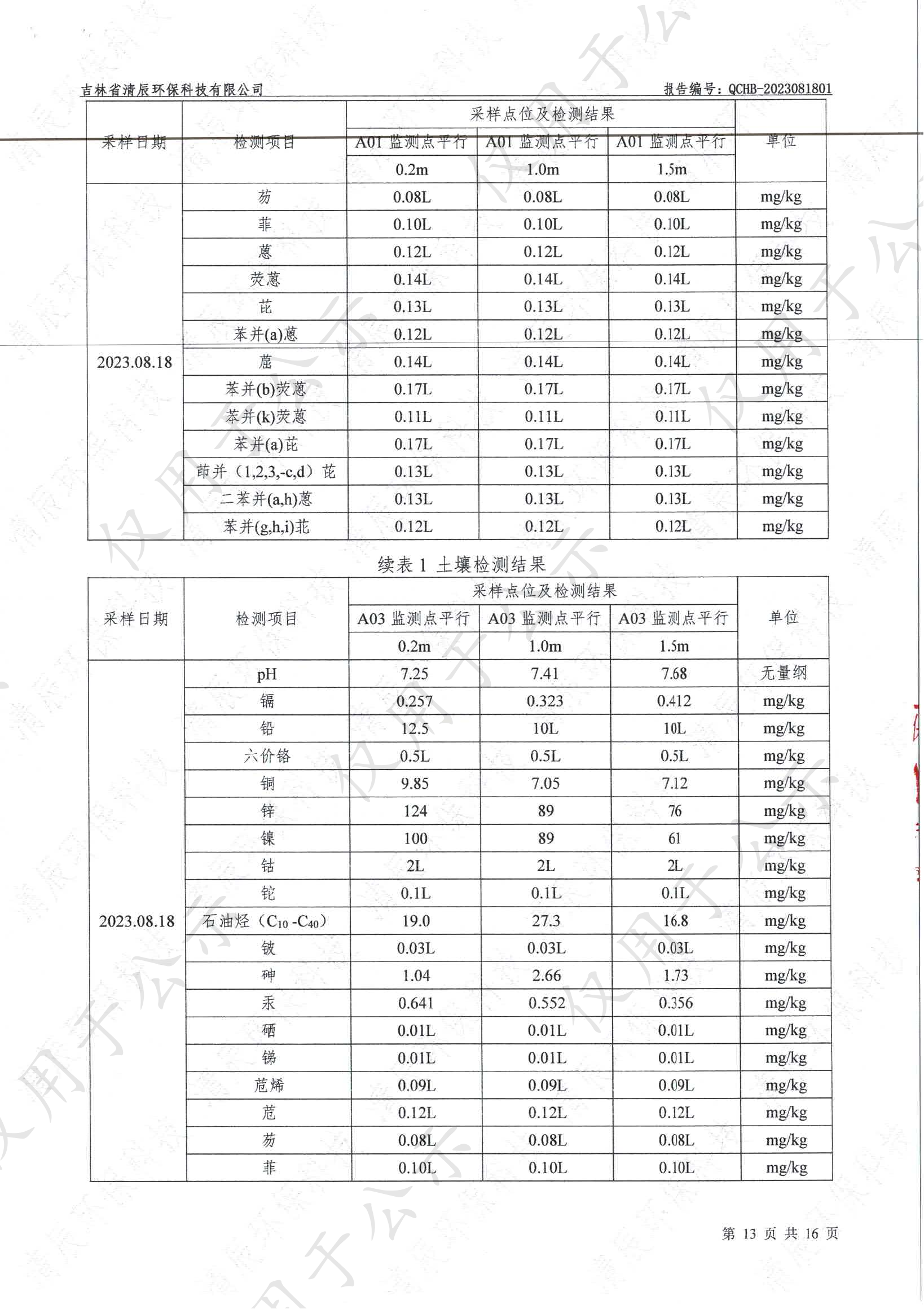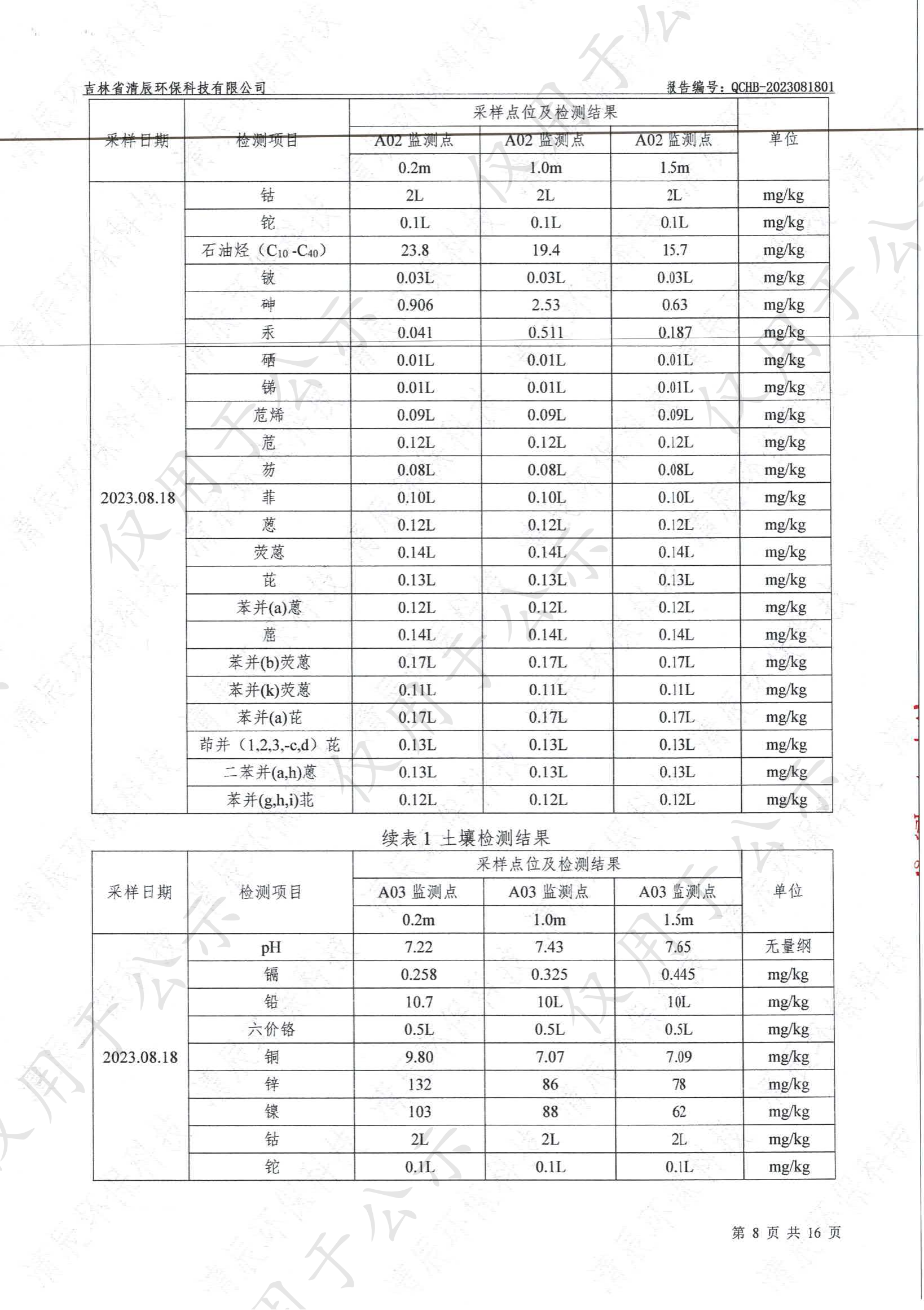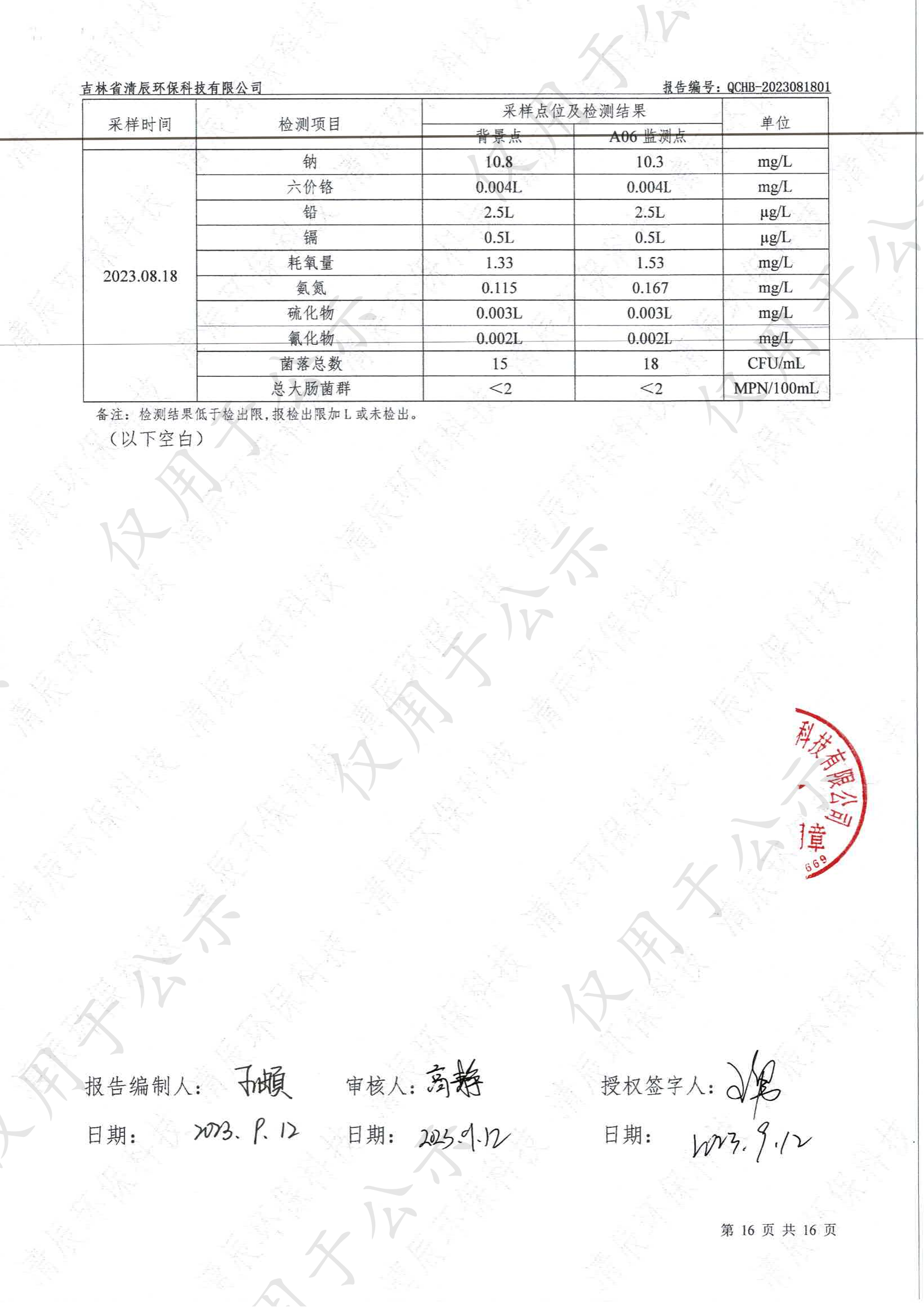 2023年土壤及地下水自行监测数据公示