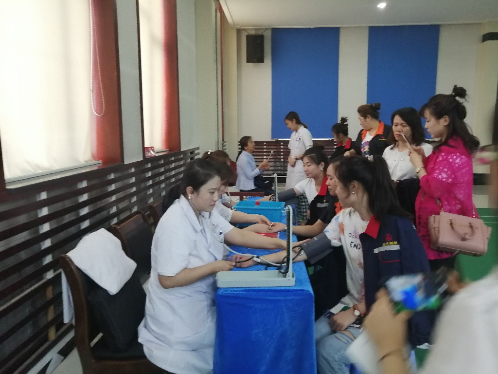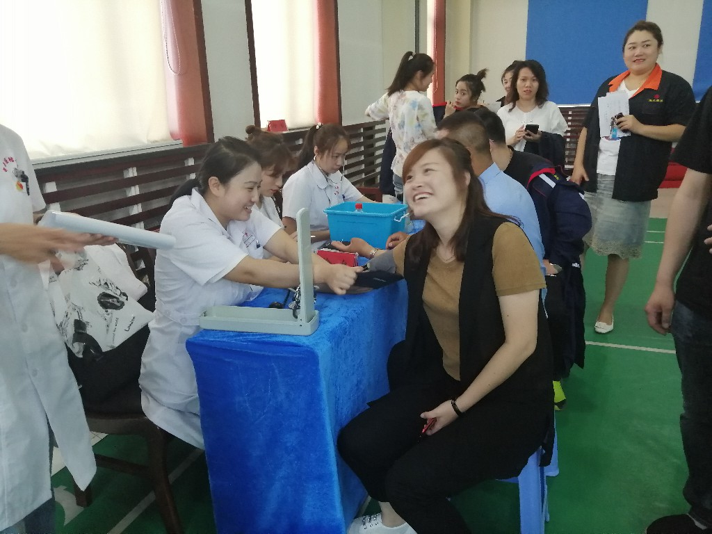 医护人员为公司员工现场免费测量血压和血糖
